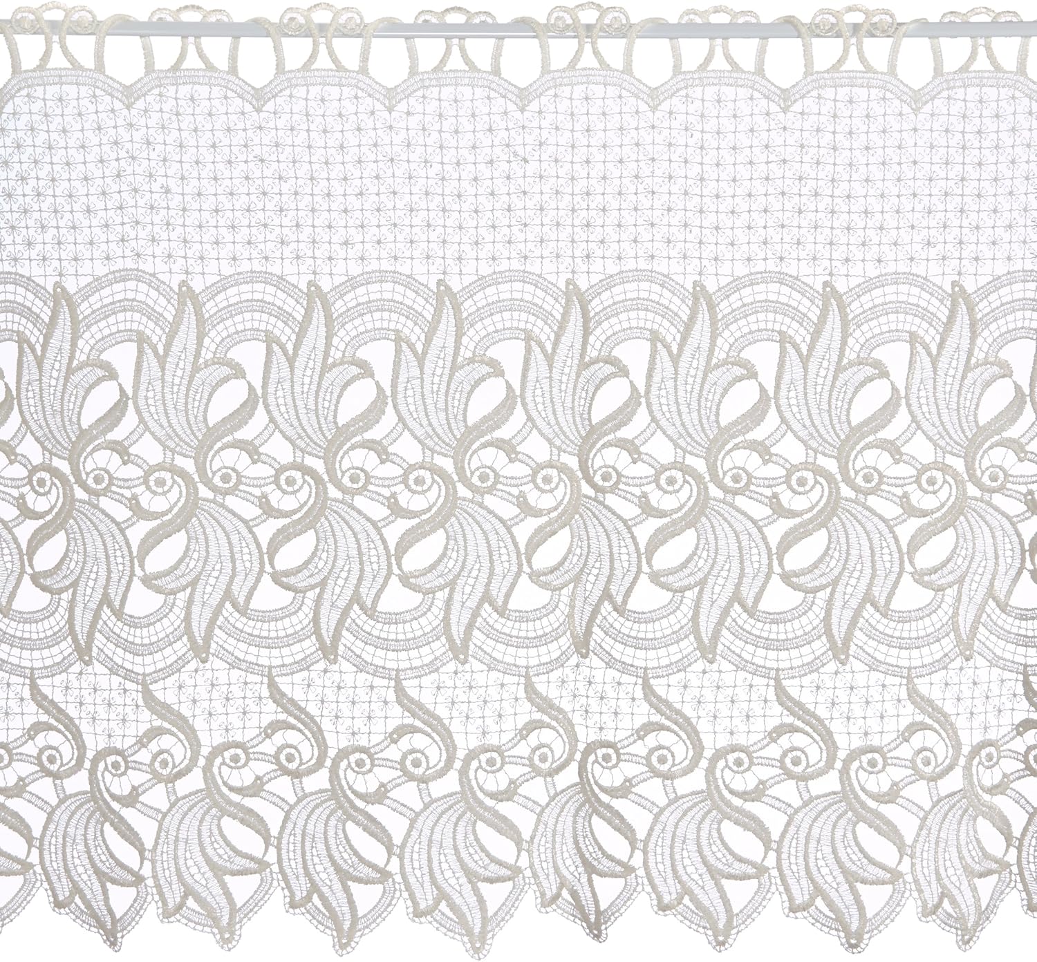 Kurzgardine als Makramee - mit Stangendurchzug oben - sehr einfach zu befestigen (Lieferung ohne Stab/ Stange)