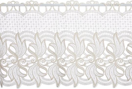 Kurzgardine als Makramee - mit Stangendurchzug oben - sehr einfach zu befestigen (Lieferung ohne Stab/ Stange)