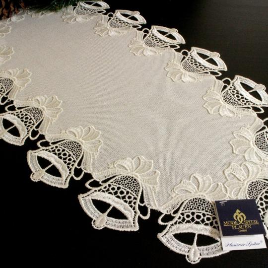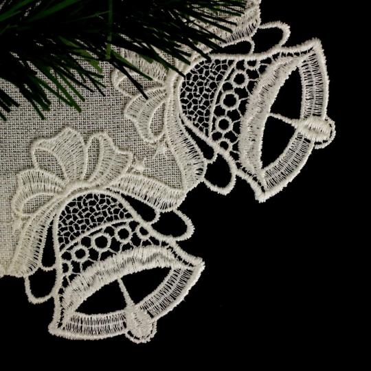 Elegante Weihnachtsdecke mit Glockenmotiv aus Plauener Spitze ® in verschiedenen Varianten.